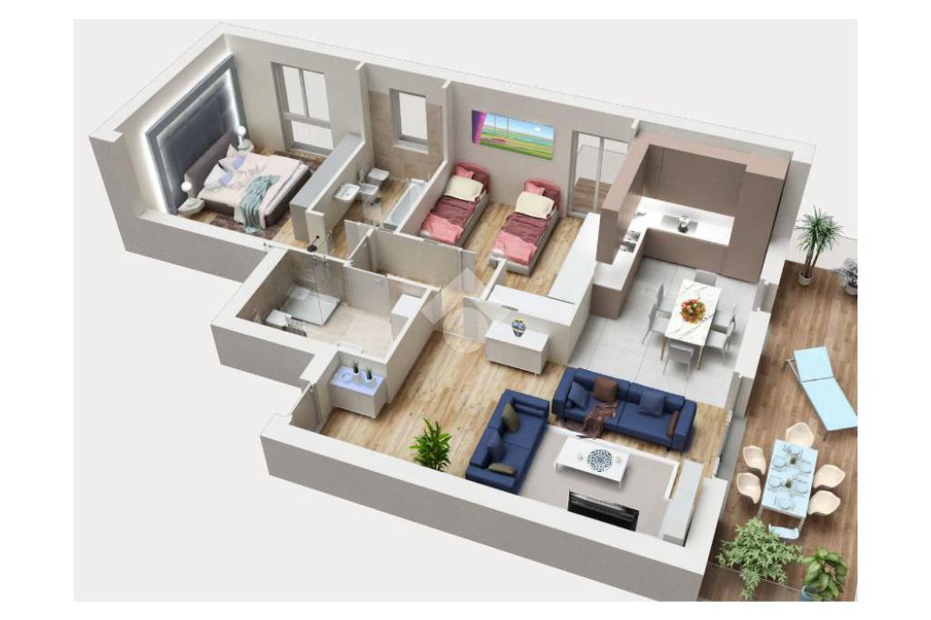 Così composto: ampio ingresso, salone doppio a vista, per accogliere gli ospiti, cucina abitabile con soleggiato balcone, due camere da letto spaziose, due bagni e utile ripostiglio per riporre le proprie cose.