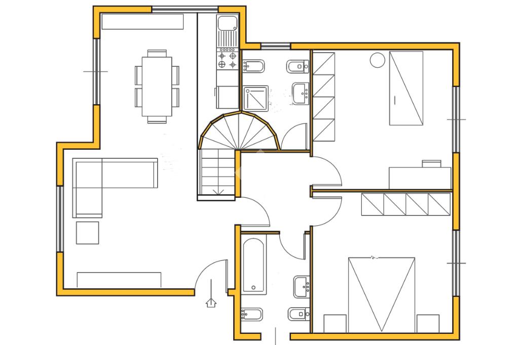 Piano Primo: due camere da letto e servizio.